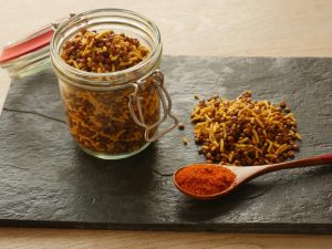 Add fried black lentil gram,prepared spice mix,mix well & serve!