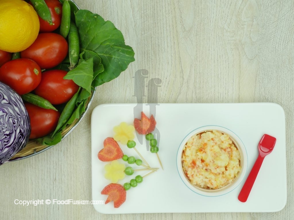 Add potatao,tomato,rice,water and mix well,bring it to boil,cover & steam cook until desired consistency (20-25 minutes).