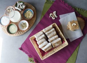 Kaju sa decorate karein aur pieces mein cut ker lein.