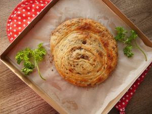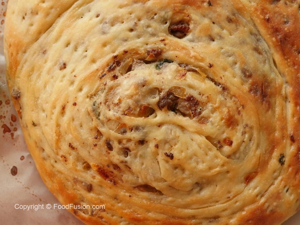 In frying pan,place afghani fateer qeema,press gently and prick with fork and brush milk,cover and cook on very low flame for 10-12 minutes then flip and apply melted butter and cook from both sides until done.