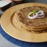 Knead dough again,take a small dough,grease hands with oil and make a ball,sprinkle dry flour,add & spread cooking oil and roll out with the help of rolling pin.