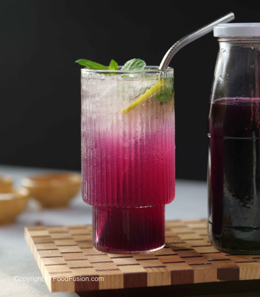 -Serving glass mein crushed ice,lemon slices,podina,tayyar syrup (3-4 tbs) aur carbonated/sparkling water dal ker stir ker lein & serve karein!