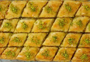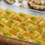 -Cut into diamond or square shapes of bakhlava using a sharp knife & separate the side of pan.