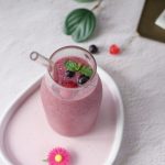 -In serving glass,add prepared smoothie & garnish with frozen berries,mint leaves & serve!