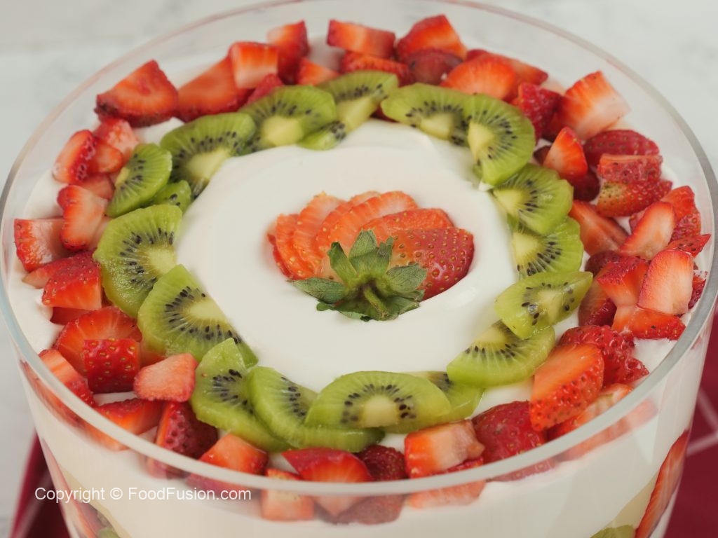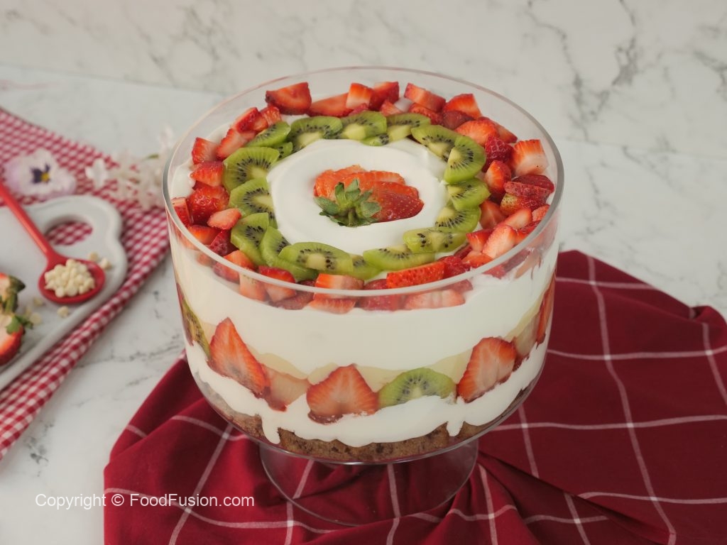 A must try dessert recipe for the entire family. This banana bread fruit trifle gives a new meaning to what a perfect dessert should be. #HappyCookingToYou #Fodofusion #OlpersCream