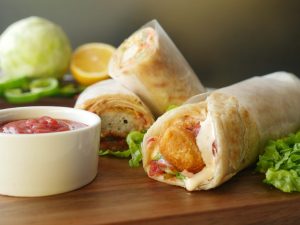 -Add prepared chicken filling (100g),place cheddar cheese slice,fold all sides & gently press to spread it.