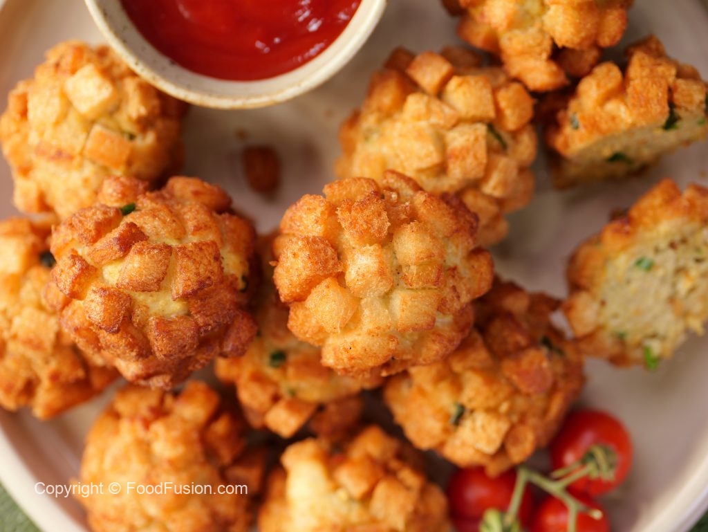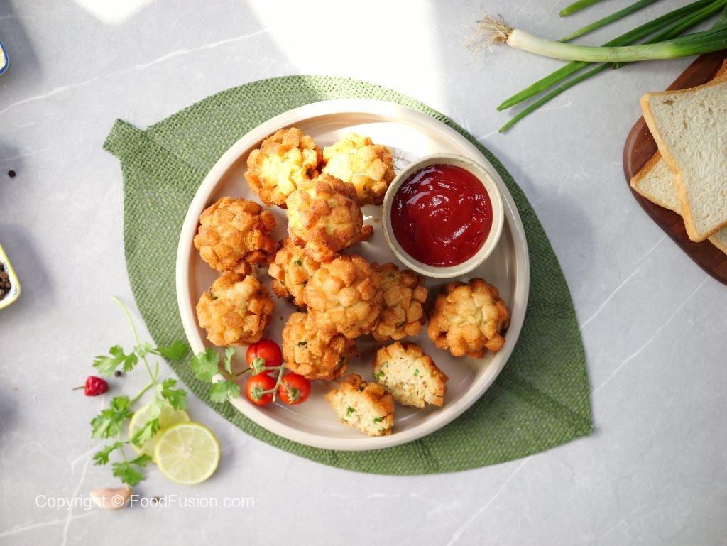 -Ab chicken ball ko bread cubes sa coat karein aur gently press ker ka shape ko set ker lein.