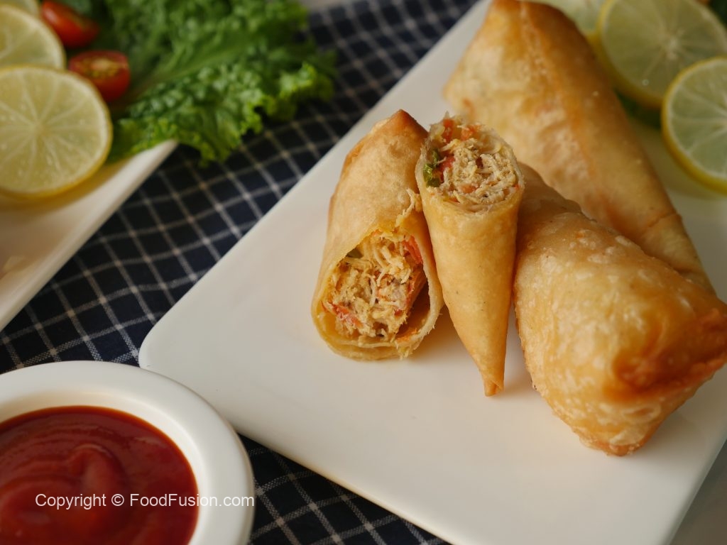 Manda patti lein aur maida ka paste laga ker pocket bana lein aur chicken filling ko center mein bhar dein aur cone ki shape bana lein aur corners ko maida ka paste sa seal ker lein (makes 14-15).