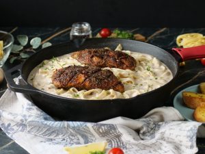 -Sprinkle 2-3 tbs prepared cajun seasoning on both sides of chicken & rub evenly (reserve remaining for sauce) & let them rest for 2-3 minutes.