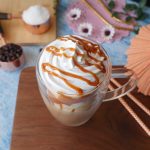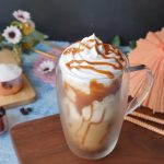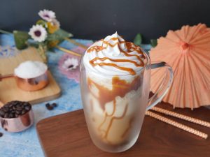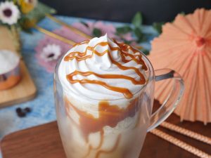 Serving glass k sides pe caramel sauce daalen or caramel Frappuccino glass may nikal len.