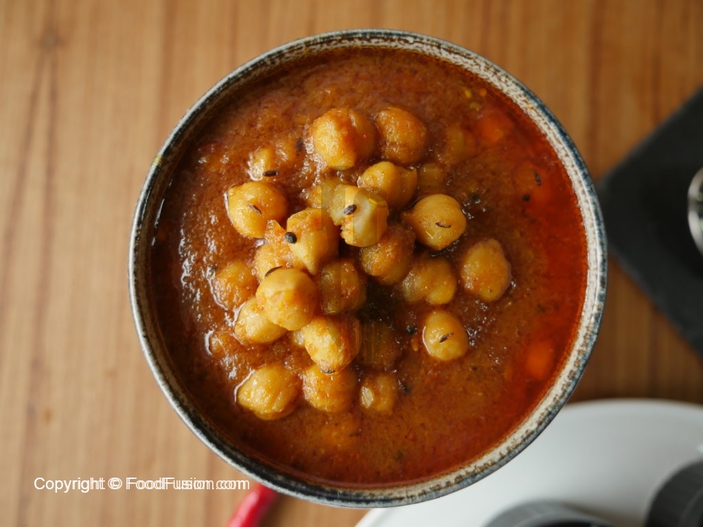 Add left over water from boiled chick peas and mix well,cover and put it on simmer for 6-8 minutes.