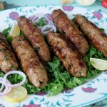 With the help of wet hand,take small quantity (85g) of mixture,make a ball & skew on metal skewers.