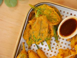 -Dip in thin pakora batter & fry in pre-heated cooking oil until golden.