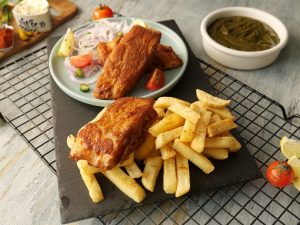 -Serve Chatpati fish fry with prepared chutney & French fries!