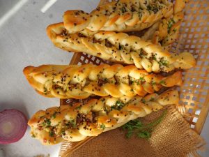 -After baking,apply butter sauce on bread (makes 6).
