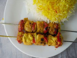 Serve chelo kebabs with butter rice,onion and tomatoes.