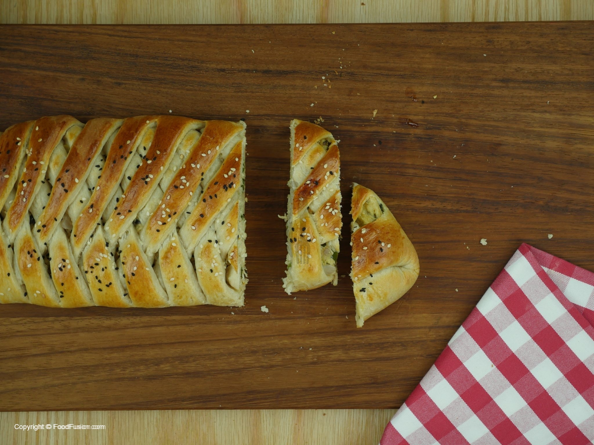 Dough ko baking tary per rakh ker egg sa wash ker lein,kalonji aur safed til sprinkle ker lein aur preheated oven mein 20-25 minute kliya bake ker lein.
