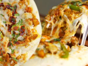 Dough ko bail lein,chicken filling aur mozzarella cheese dal dein,edges per pani laga lein aur press ker ka edges ko cookie cutter ki madad sa seal ker lein.