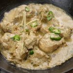 -On low flame,add yogurt,green chillies,black pepper crushed,coriander seeds,white pepper powder, cumin seeds,chicken powder,coconut milk powder,lemon juice,mix well & cook on high flame until oil separates (2-3 minutes).