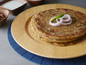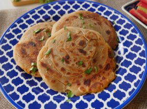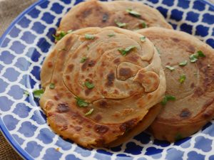 Heat griddle,place rolled dough,apply melted ghee & fry on medium flame from both sides until golden brown.