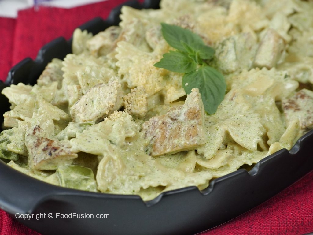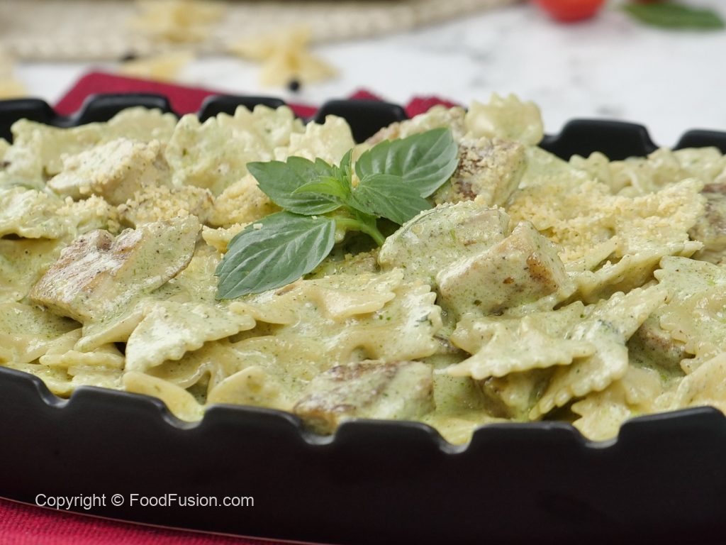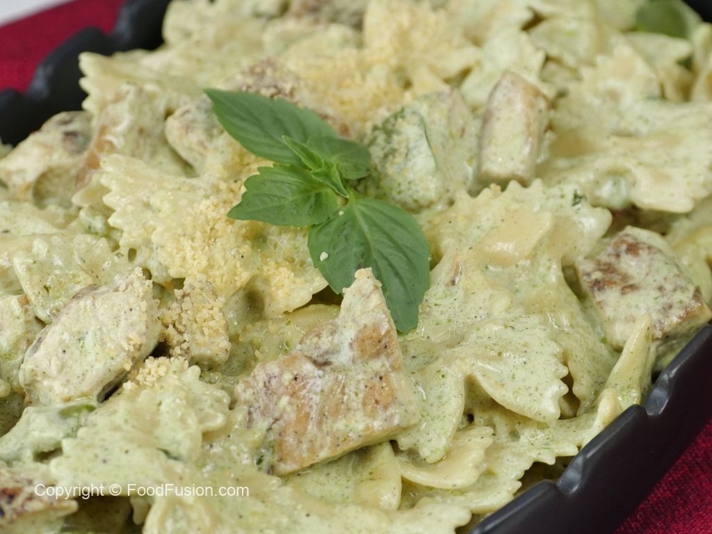 One of the best Chicken Pesto pasta recipes in signature Food Fusion Style. #HappyCookingToyou #FoodFusion #OlpersCream