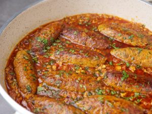 -Add prepared seekh kabab,fresh coriander,cover & simmer on low flame for 4-5 minutes & serve!