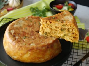 -Poke holes with wooden skewer & pour the remaining egg mixture on the top.