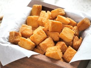 -In a wok,heat cooking oil & fry on low flame until golden & crispy.