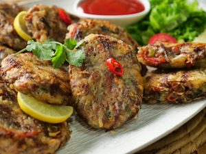 -Ab kababs ko tayyar batter mein dip ker lein.