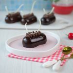 -Pipe out the chocolate mocha mousse in oval shape silicone cake mold,spread evenly & place a thin layer of sponge cake,press gently & freeze for 6 hours or overnight in freezer.