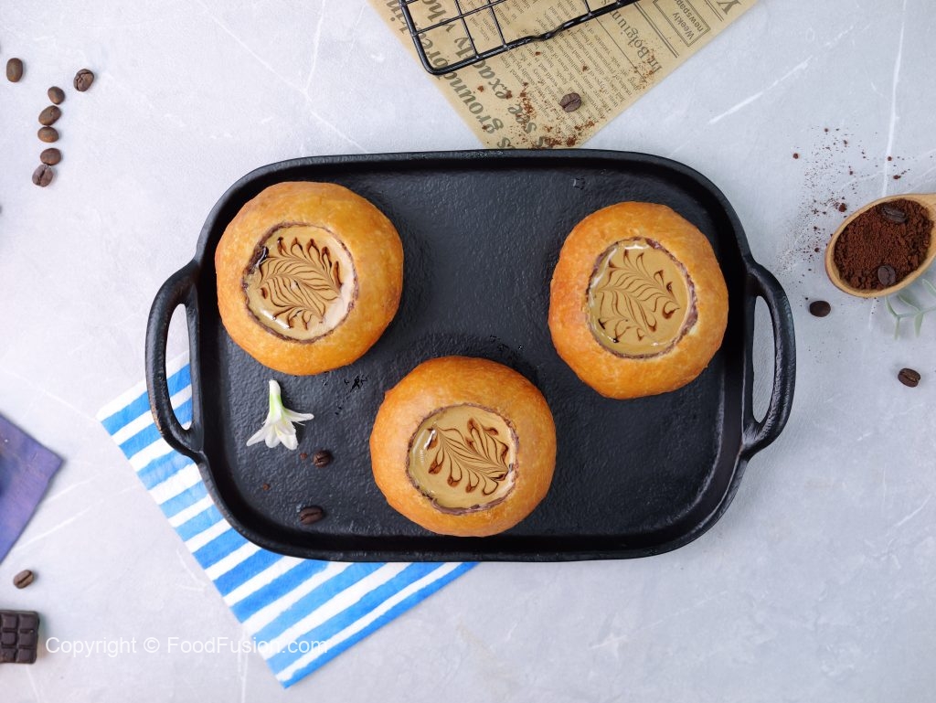 -Dough ko center mein sa cut ker lein & center mein cavity bana lein.