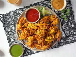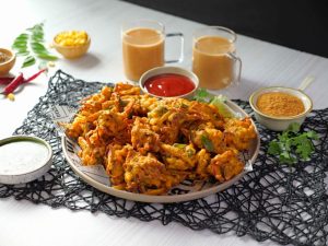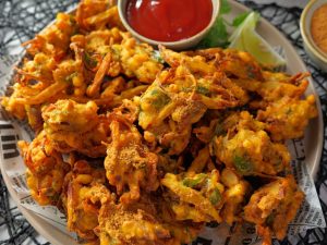 -In a wok,heat cooking oil & fry pakoray on medium flame until golden & crispy.