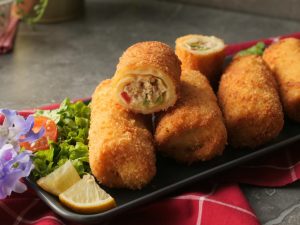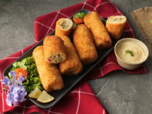 Bake in preheated oven at 200C for 18-20 minutes,brush oil on crepe rolls (flip in between once after 9-10 minutes).