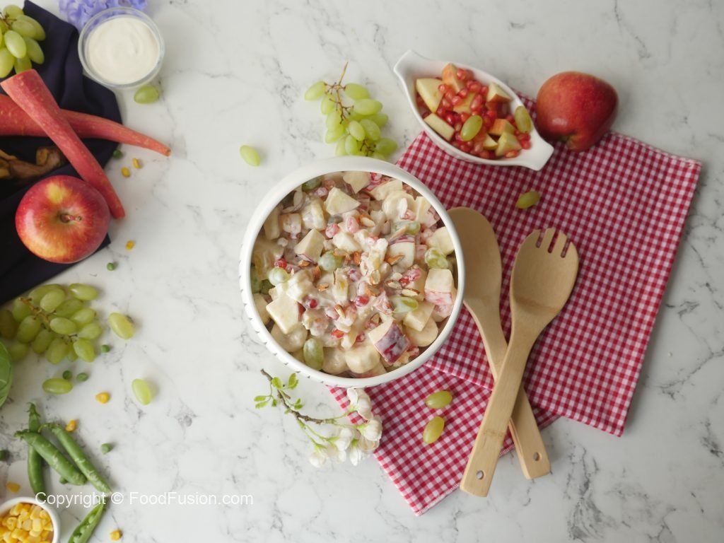 Add apple,grapes,mixed fruit cocktail,pomegranate,banana,almonds & mix well.