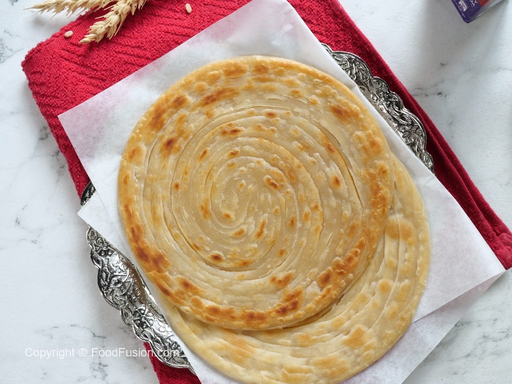 -Add paratha and fry on medium flame from both sides with clarified butter until golden.