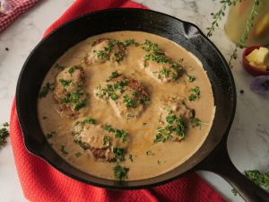 -In a jug add cream,chicken stock,dijon mustard,salt,black pepper crushed,cayenne pepper,dried thyme,whisk well & set aside.