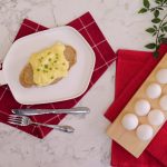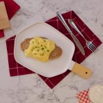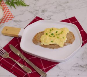 -Pan ko heat sa hata lein jab anday set ho jayein magar egg ka little liquid reh jaye.