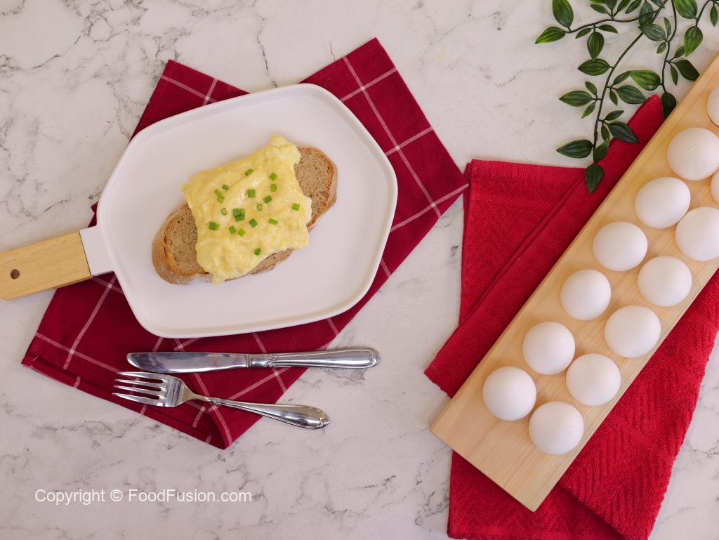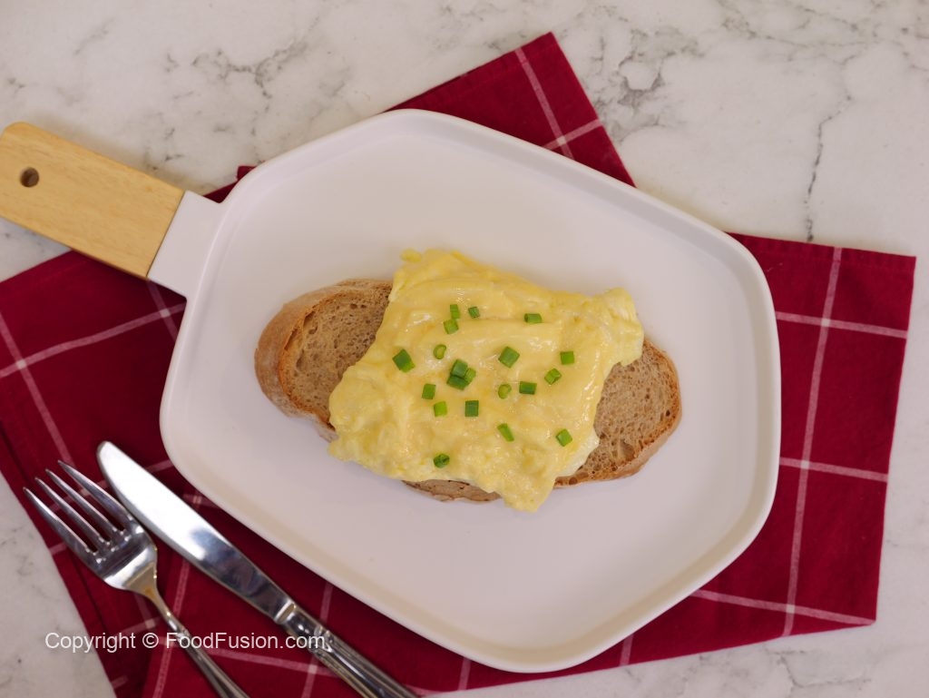 -Scrambled egg ko sour bread ka supper rakh dein & hara pyaz leaves dal ker serve karein!