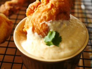 Serve drumsticks with spicy potato sauce.