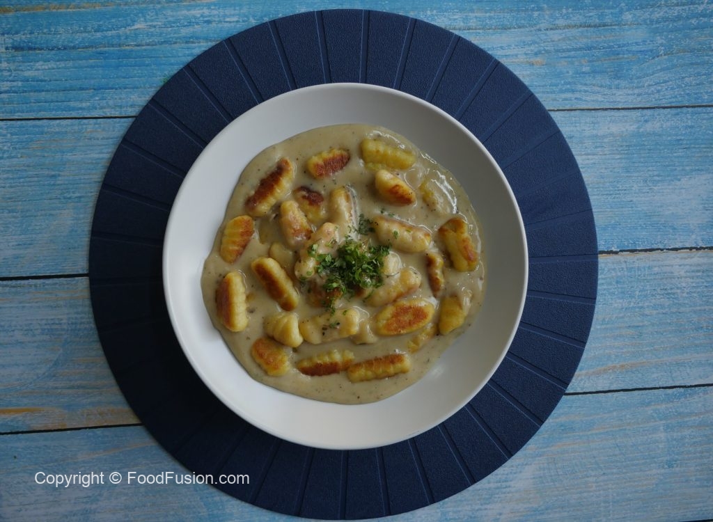 Crispy Gnocchi Pasta with Cheese Sauce