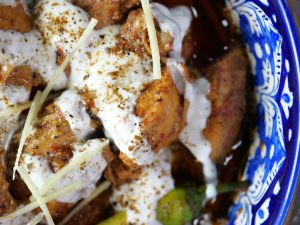 -In a serving dish,add chicken karahi,yogurt & sprinkle reserved spice mix.