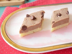 Serving glass mein red jelly cubes,green jelly cubes,doodh dulari dal dein,pink gulab jaman aur pista sa garnish ker ka serve karein.