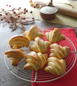Place the croissants on the greased baking tray. Folding end must lay down.