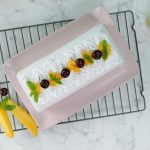 -Place pound cake & spread prepared mango puree on it.