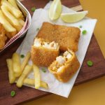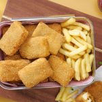 Coat frozen fish nuggets with all-purpose flour than dip into liquid flour mixture & coat with breadcrumbs (makes 26-28).