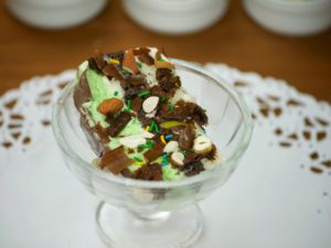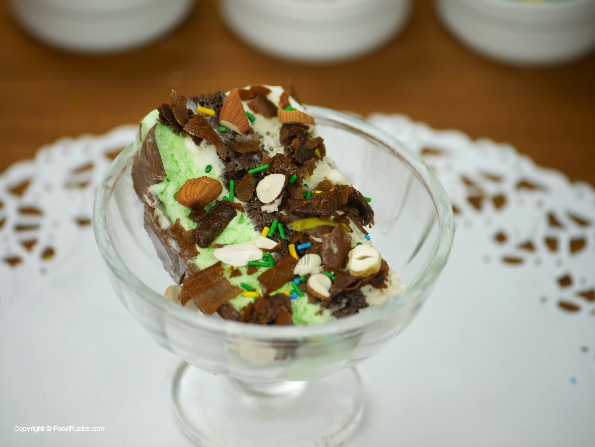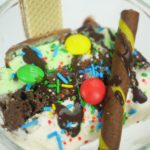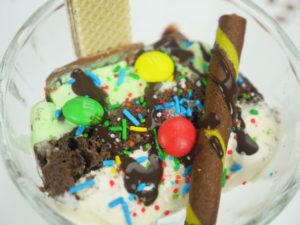 Nuts,bunties,chocolate chips,rainbow sprikles dal ker serve karein.