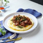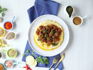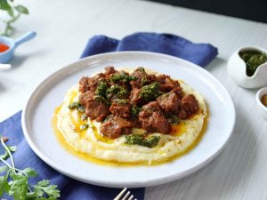 Fry Beef Boti with Mash Potato & Chimichurri Sauce