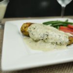 Tarragon sauce ko grilled chicken per dal ker serve karein.