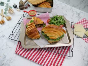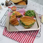 -Add prepared spicy bbq sauce on top croissant & flip to make a sandwich (makes 3-4).