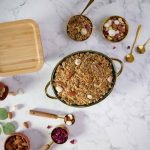 -Phir se ghee melt karein aur almonds, pistachios, cashews, walnuts aur dried coconut add karke low flame par 3-4 minutes fry karein.